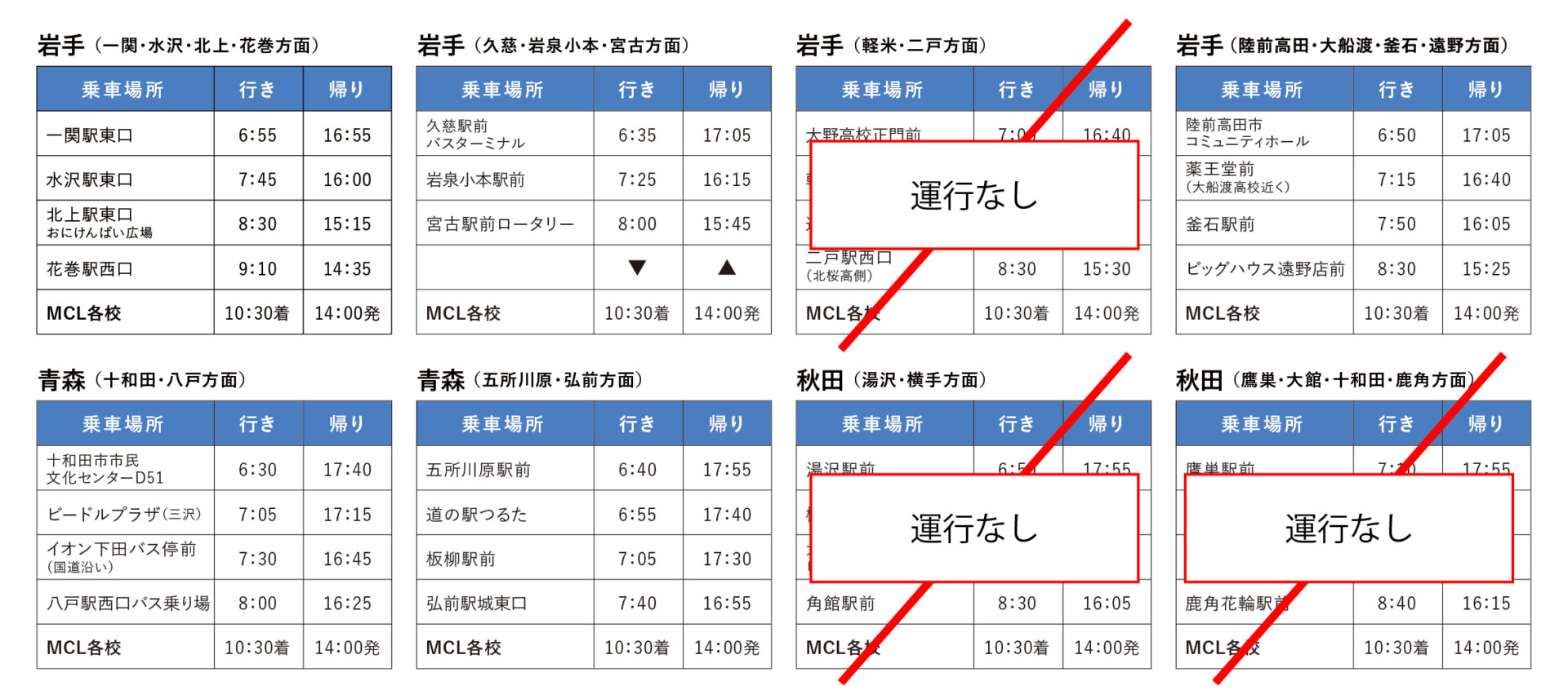 岩手・青森・秋田の各地から無料送迎バスを運行します🚌