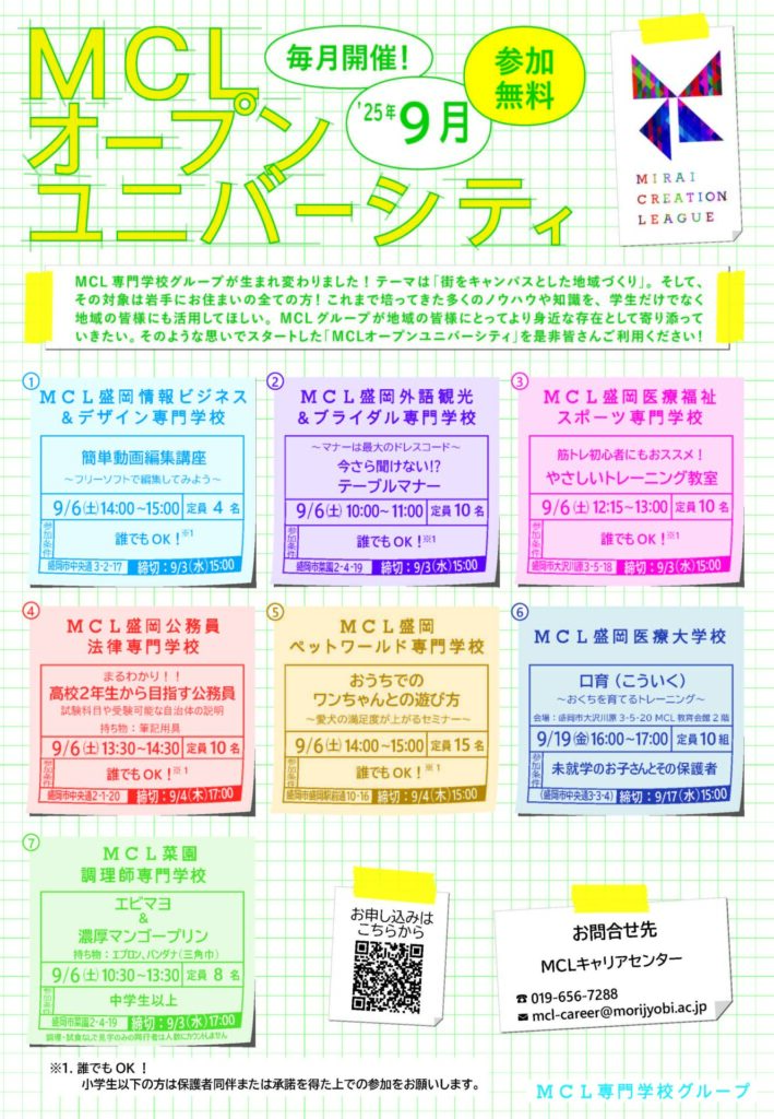 MCL専門学校グループでは、岩手県にお住まいの皆さんへ向けて市民講座を開催しております。